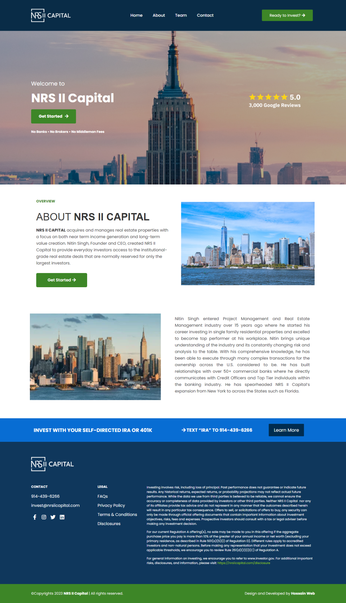 NRS II CAPITAL acquires and manages real estate properties with a focus on both near term income generation and long-term value creation. Nitin Singh, Founder and CEO, created NRS II Capital to provide everyday investors access to the institutional-grade real estate deals that are normally reserved for only the largest investors.
